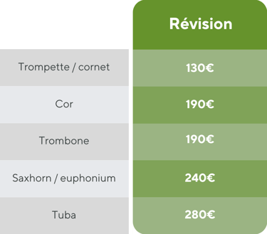 La révision de votre cuivre permet d'endiguer la corrosion à l'intérieur de l'instrument et de garder une mécanique qui fonctionne toujours de manière optimale. Voici les détails du travail :